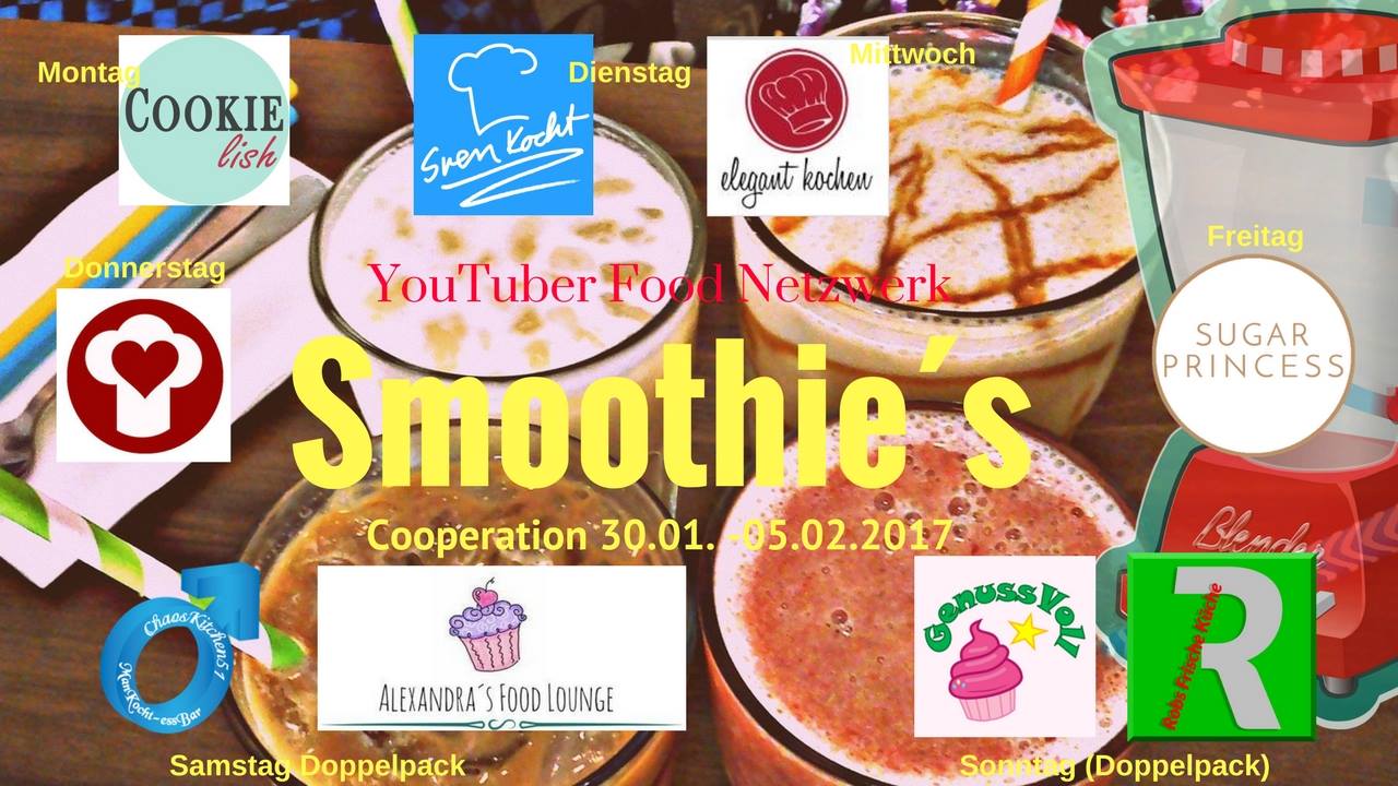 Herzlich Willkommen bei Cookielish. In dieser Woche gibt es eine tolle Smoothie-Kooperation, organisiert von der ChaosKitchen 51. Von winterlich über exotisch bis hin zu gesund ist für jeden was dabei.